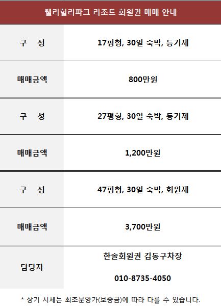 | 용평리조트 37평 버치힐콘도 회원권 급 매물 안내입니다. (0) | 2020.08.13 |