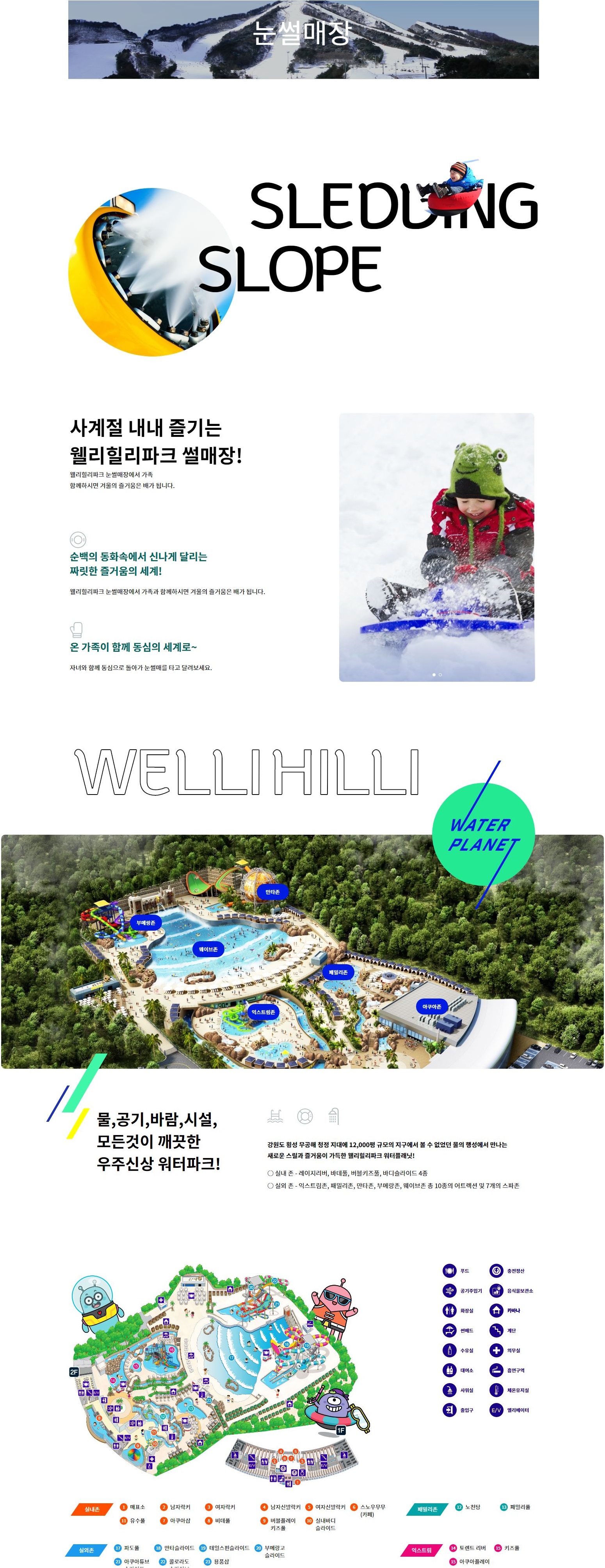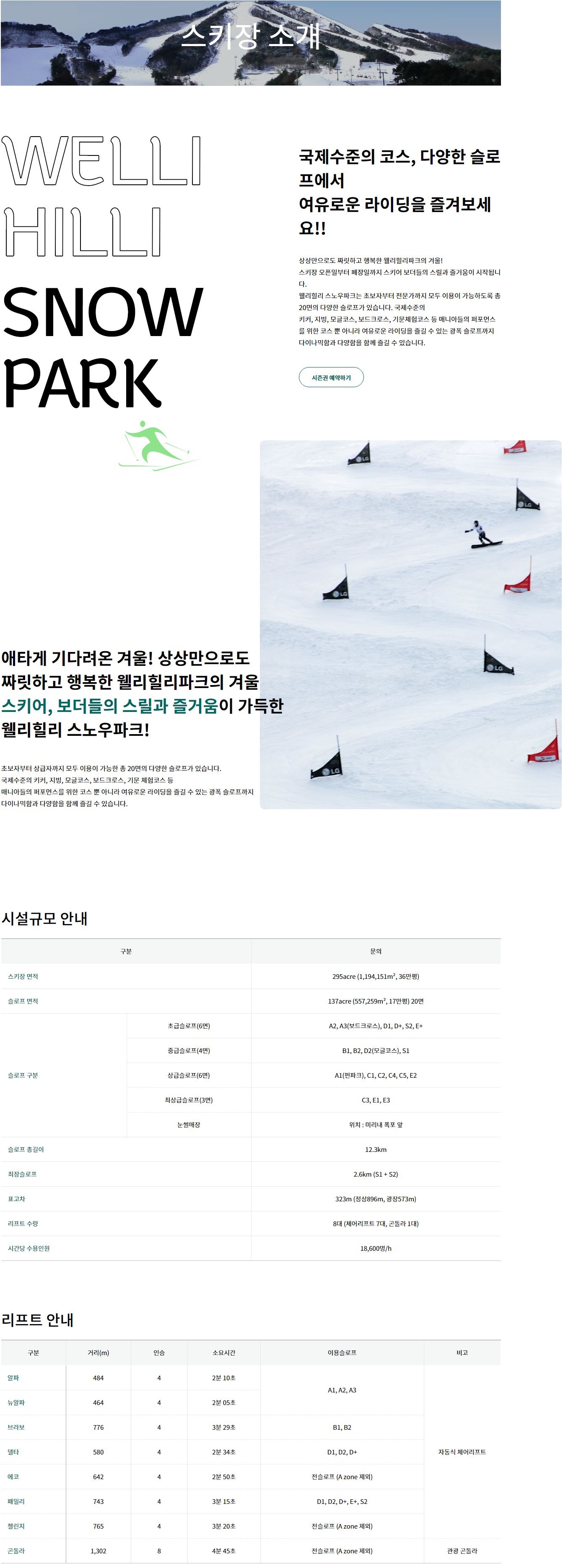 부대시설 : 스키장, 골프장, 눈썰매장, 워터파크, 짚라인, 루지 등