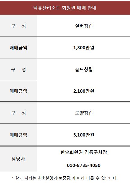 | 한화리조트 회원권 매매 정보 입니다. (3) | 2021.06.17 |