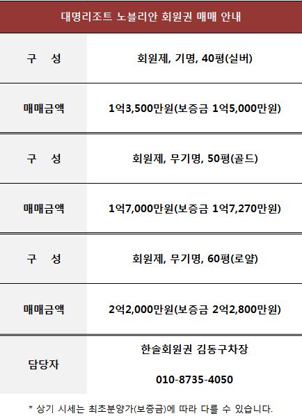 | 대명리조트 스위트 회원권 매매 정보 입니다. 소노호텔앤리조트 (0) | 2021.06.22 |