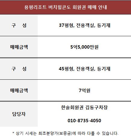 | 용평리조트 용평콘도 회원권 매매 정보 입니다. (0) | 2021.07.08 |
