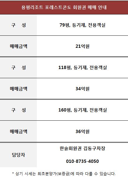 | 용평리조트 용평콘도 회원권 매매 정보 입니다. (0) | 2021.07.08 |