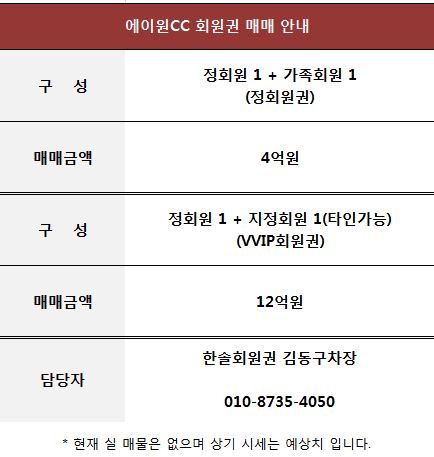 - VVIP회원권(분양가 4억5천만원/5억5천만원/6억5천만원)